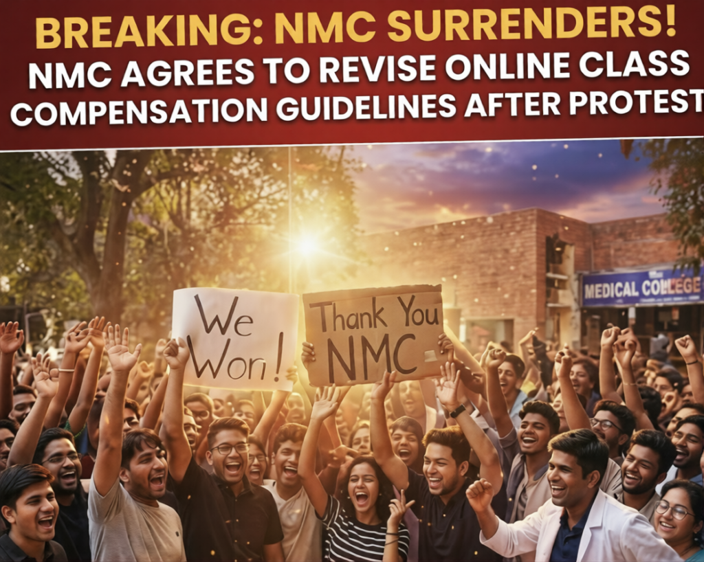 The National Medical Commission (NMC) has agreed to revise its recent notice on mandatory compensation classes for foreign medical graduates (FMGs) after protests in New Delhi. Student groups say the changes came following discussions with the commission to address concerns raised by FMGs.